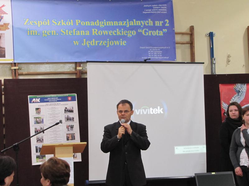 Następnie głos zabrał Paweł Kowalski Prezes ŚZŻ AK Koło w Jędrzejowie bez uprawnień kombatanckich, który podziękował wszystkim za udział w tej podniosłej uroczystości a szczególnie młodzieży, która mimo dnia wolnego od zajęć oraz zimowego chłodu uczestniczyła w tej "lekcji patriotyzmu". Po zakończeniu części oficjalnej wszyscy uczestnicy zostali zaproszeni przez Koło AK w Jędrzejowie i Starostę E.Kaczmarka na symboliczny wojskowy poczęstunek.