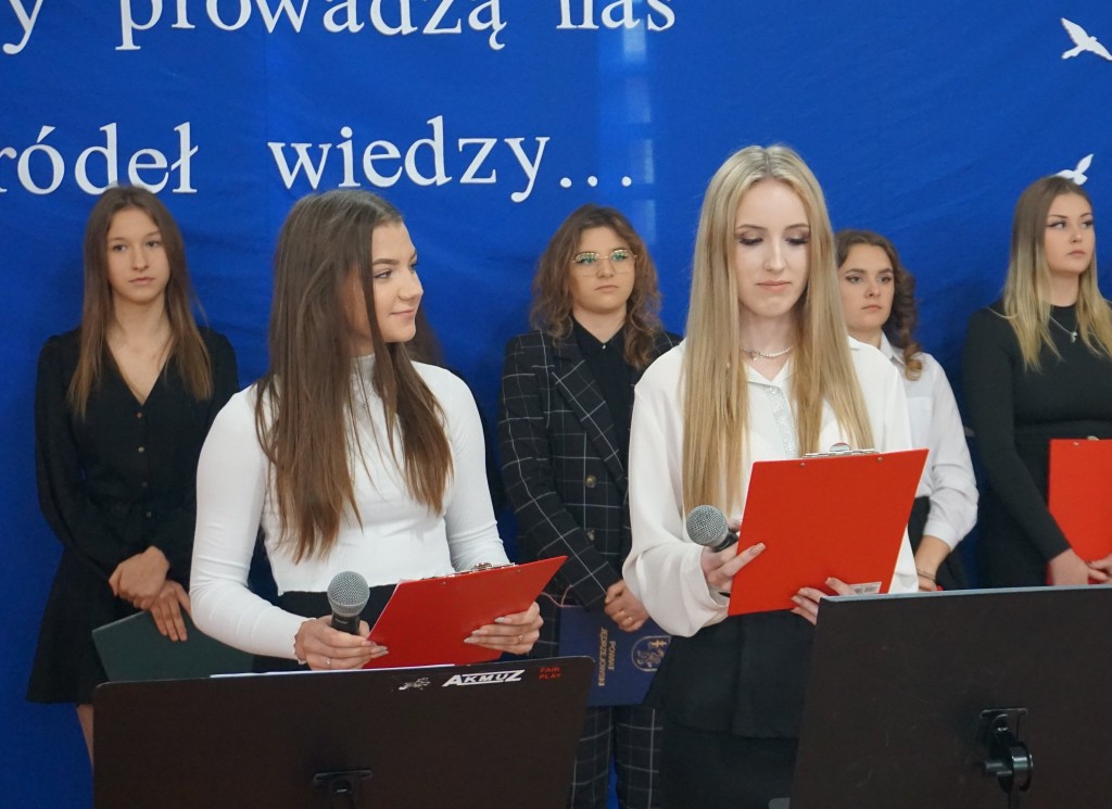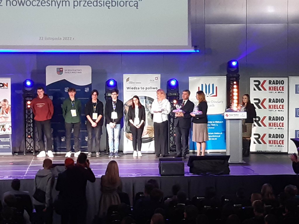 We wtorek 18 października w naszej szkole odbyły się powiatowe uroczystości obchodów Dnia Edukacji Narodowej w trakcie których wręczone zostały nauczycielom i pracownikom oświaty nagrody, odznaczenia, a także akty mianowania. Swe słowa podziękowania za trud wkładany w codzienną pracę na rzecz oświaty skierowali do nauczycieli: Paweł Faryna (Starosta Jędrzejowski), Zbigniew Koniusz (Wojewoda Świętokrzyski), Zbigniew Mądzik (Świętokrzyski Kurator Oświaty). List od Marka Bogusławskiego (Wicemarszałka Województwa Świętokrzyskiego) odczytała Kinga Bierońska. Głos zabrali także przedstawiciele Związków Zawodowych: Lidia Osińska oraz Elżbieta Bartosz. Po wystąpieniach zaproszonych gości 47 nauczycieli uczących w szkołach na terenie powiatu jędrzejowskiego uhonorowanych zostało między innymi: Złotym oraz Srebrnym Krzyżem Zasługi za działalność na rzecz rozwoju oświaty, Medalem Złotym oraz Srebrnym za Długoletnią Służbę, Medalem Komisji Edukacji Narodowej. Wręczone zostały Nagrody Ministra Edukacji i Nauki, Nagrody Świętokrzyskiego Kuratora Oświaty oraz Nagrody Starosty Jędrzejowskiego, akty potwierdzające uzyskanie stopnia awansu zawodowego nauczyciela mianowanego. Podsumowaniem uroczystości był przygotowany przez naszych uczniów program artystyczny oraz występ chóru nauczycielskiego „Grocik”.