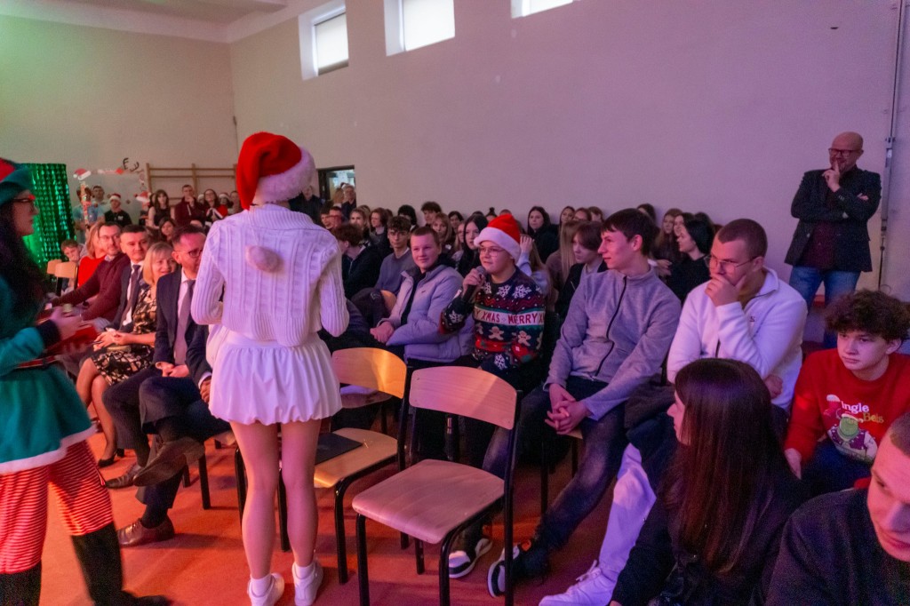Dzisiaj uczniowie klasy trzeciej ze Szkoły Podstawowej Nr 3 w Jędrzejowie wraz z wychowawczynią przybyli do naszej szkoły na wyjątkowe warsztaty pierniczkowe. W szkolnej pracowni gastronomicznej czekały na nich przygotowane stanowiska a na nich wałki, foremki, miseczki z lukrem i kolorowymi posypkami. Dzieci wałkowały ciasto, wycinały świąteczne kształty – gwiazdki, serduszka, choinki, a nawet małe bałwanki i układały je na blachach. Kiedy pierniczki się piekły, dzieci miały chwilę na rozmowę ze starszymi uczniami kierunku technik żywienia i usług gastronomicznych, którzy opowiadali o swoich zajęciach i pasji do gotowania. To była świetna okazja, aby zaproszeni goście mogli zobaczyć profesjonalną kuchnię „od środka”.