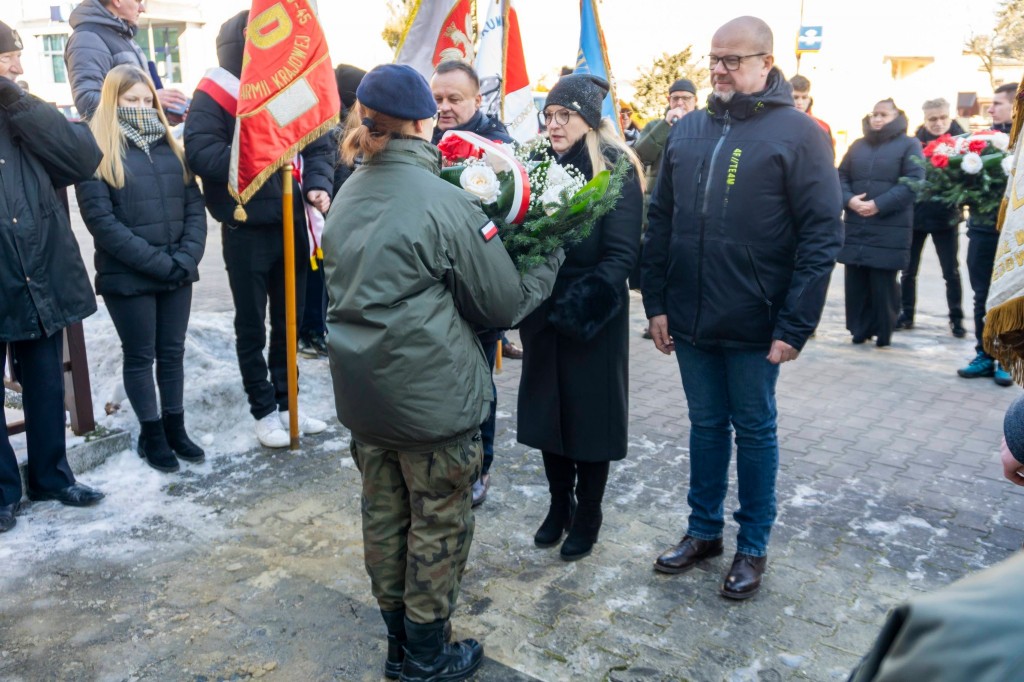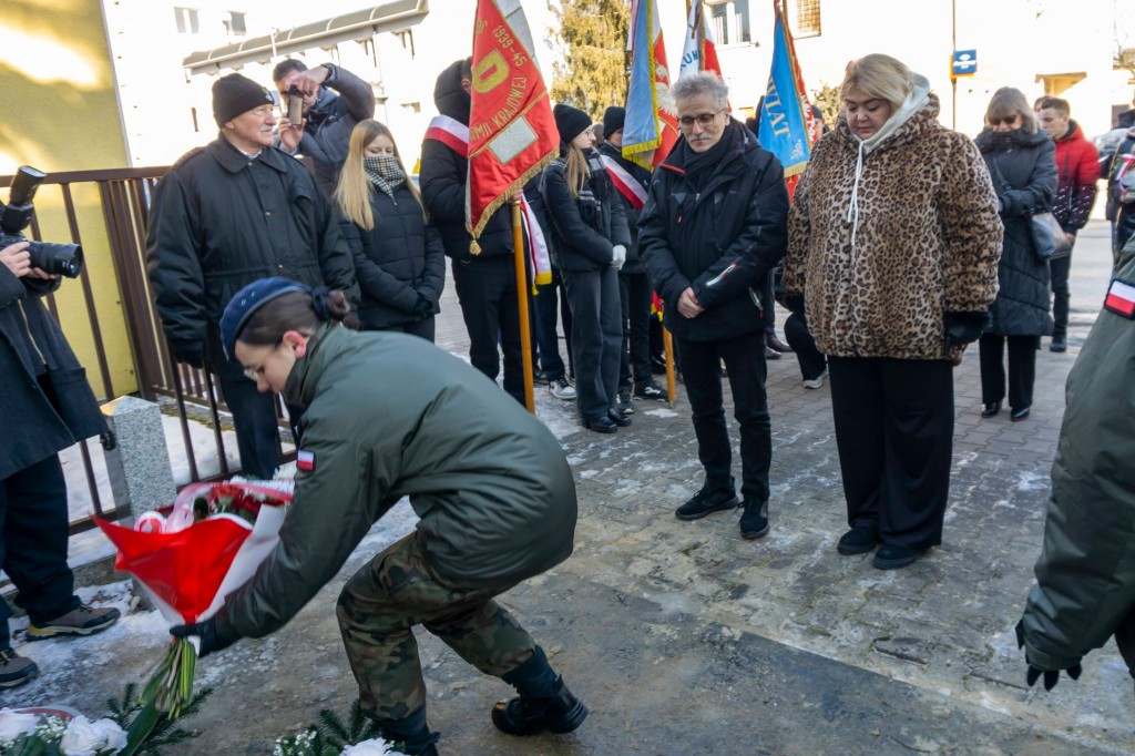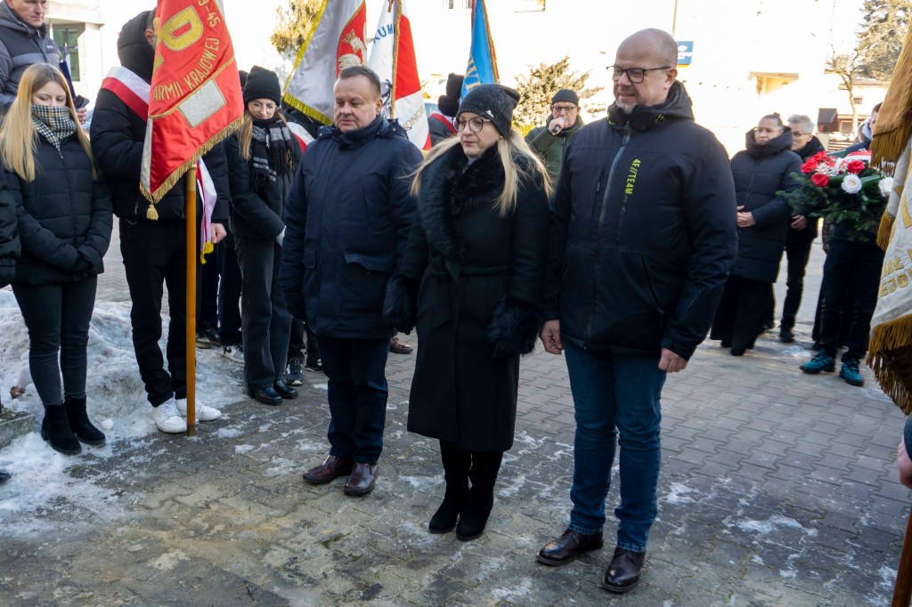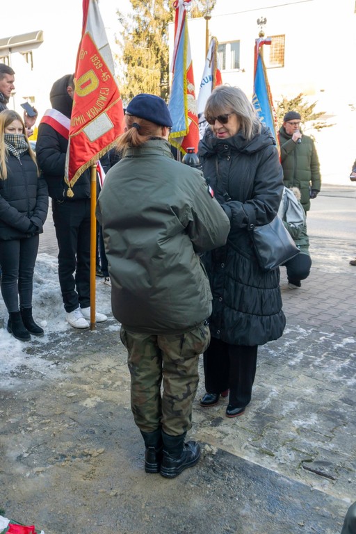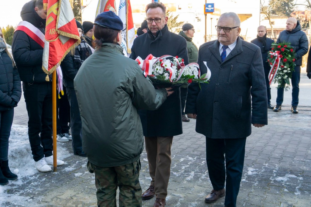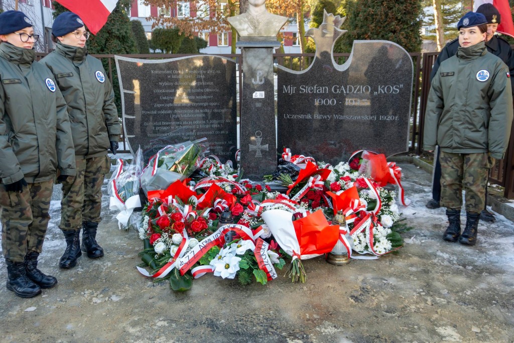 Po Mszy Świętej uczestnicy udali się pod pomnik majora Stefana Gądzio „Kosa”, znajdujący się przy Zespole Szkół nr 2 im. gen. Stefana Roweckiego „Grota” w Jędrzejowie. Po odśpiewaniu Hymnu Narodowego głos zabrał starosta Paweł Faryna. W swoim przemówieniu podkreślił że, „Historia to nie tylko daty w podręcznikach, ale przede wszystkim ludzie i decyzje, które mieli odwagę podjąć”.